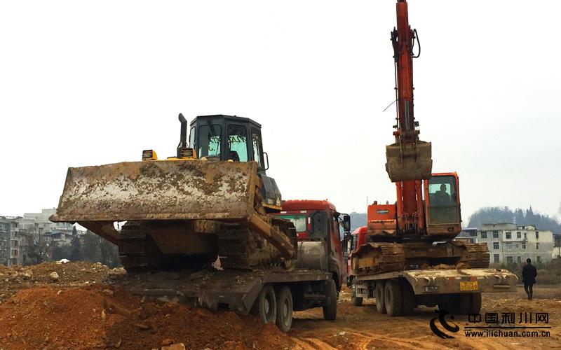中国利川网讯(全媒记者 吴向海 周青帝)3月1日,在汪营镇苏家桥易地扶贫搬迁安置小区施工现场,数十台工程车、挖掘机等大型机械设备开足马力平整地基,强力推进项目建设,力争8月200家贫困户入住新房。