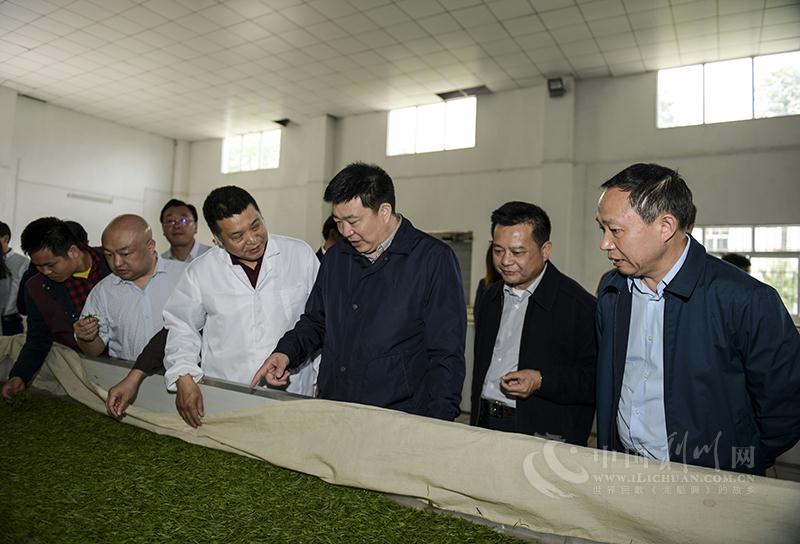 与会领导和嘉宾在利川毛坝飞强茶业车间考察 牟联文摄