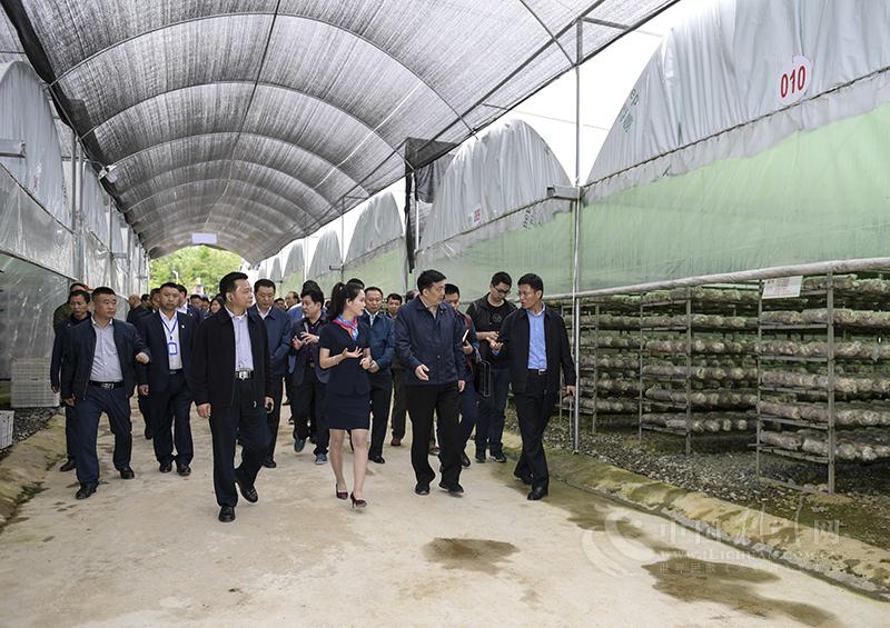 与会领导和嘉宾在利川汪营井坝村香菇基地参观 牟联文摄