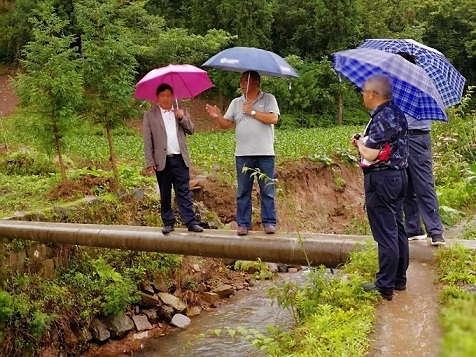 6月21日,市农业局副局长熊彪带领龙丰村“尖刀班”成员在市农业技术推广中心主任王昌斌的陪同下冒雨来到汪营镇水杉坝村督查精准扶贫工作。