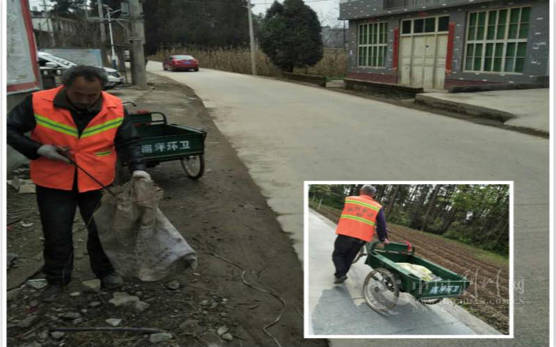 2017年9月,陈万学申请担任大河村的保洁员,每个月500元的生活补贴,一年可以收入6000元。